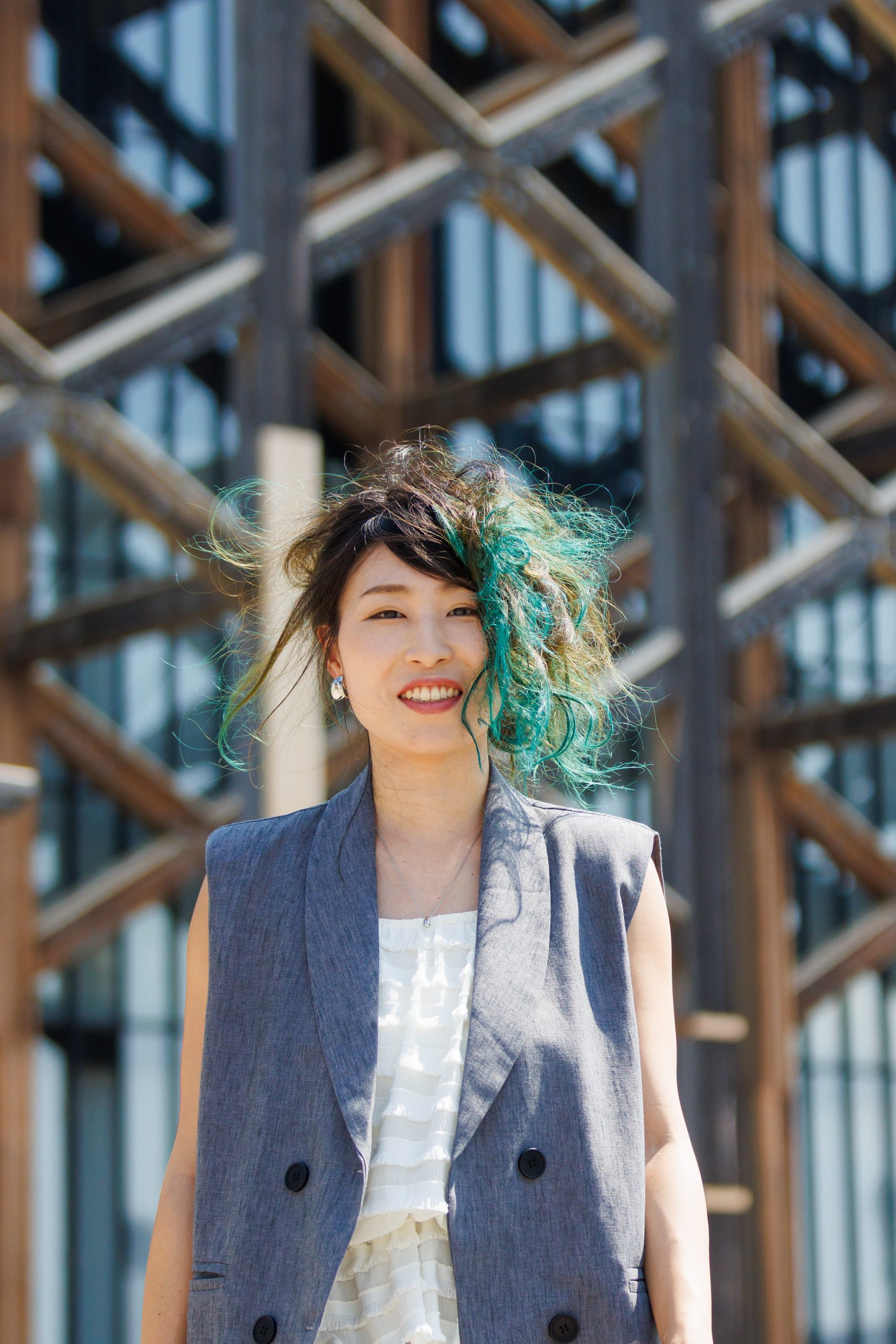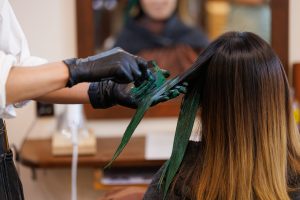 パキっとグリーンにイメチェンしましたが、全体を染めているわけではないので結んだり、お団子にすることで染めたところを隠すこともできるのでTPOに合わせたスタイルに変更することもできます✨