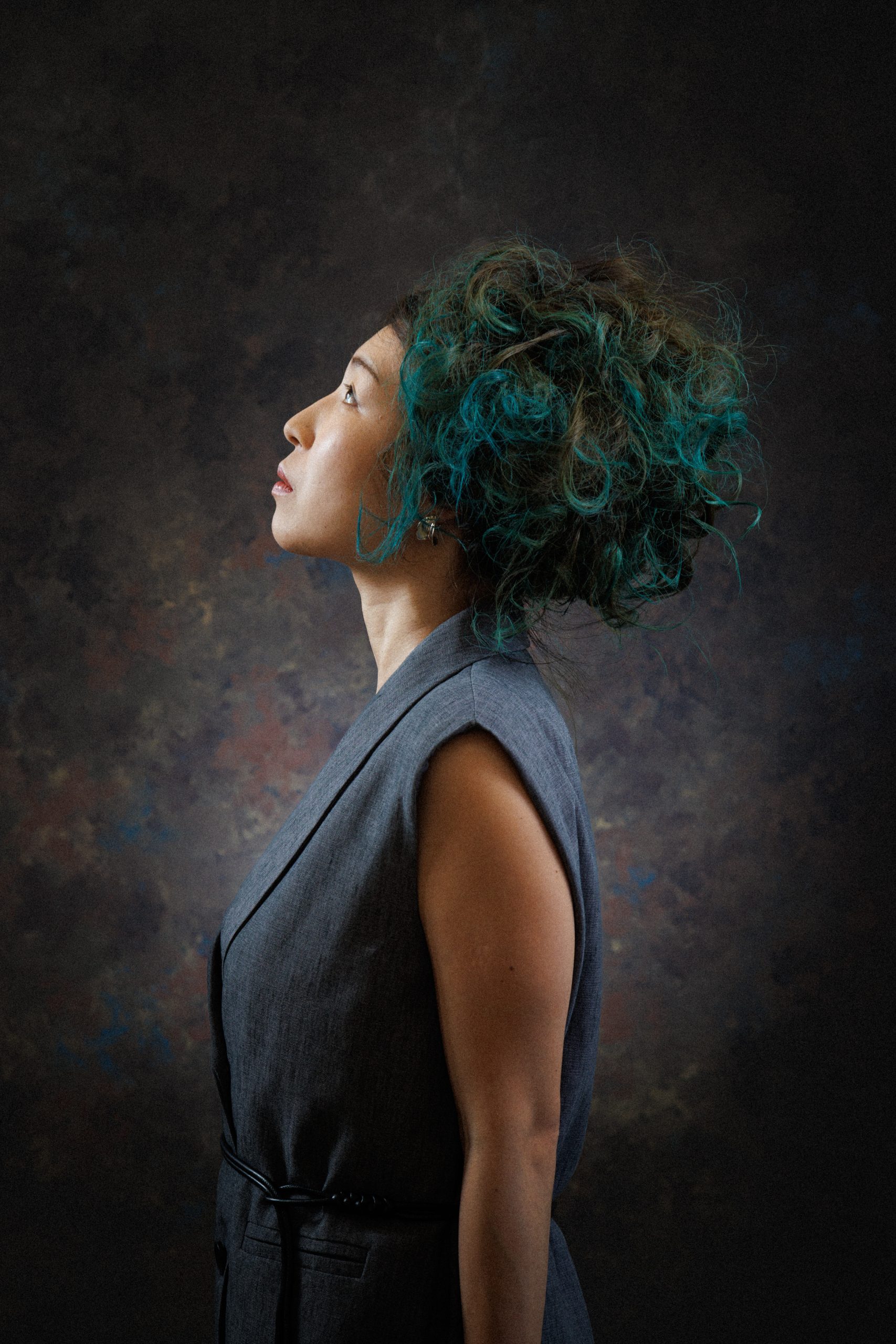 個性的なグリーンの髪色とアップにしたウエーブヘアにちょうどよいバランスを取りながら、柔らかいカーブをつけながらキレイめでクールな眉に✨