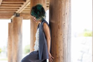昨年、思い切ってブリーチして髪色をグリーンにしたあゆみママ。