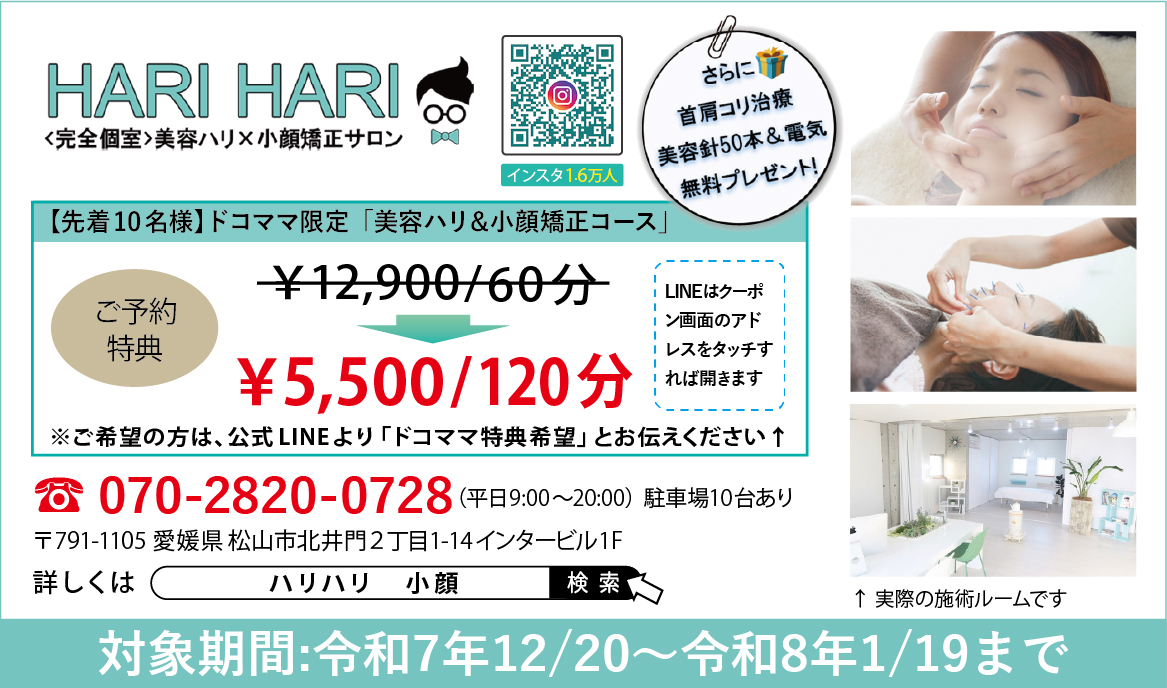 HARI HARI公式LINEよりご予約頂くと、先着10名様60分¥12,900を120分¥5,500に♪さらに首肩コリ治療、美容針50本&電気無料プレゼント!!