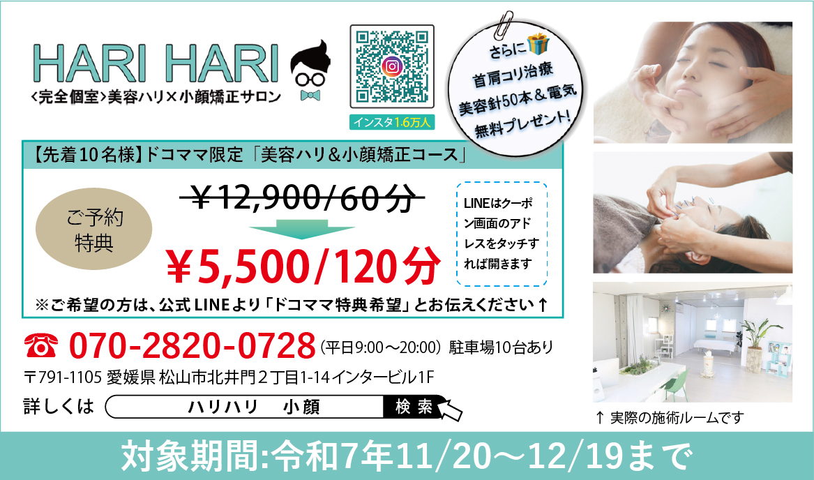 HARI HARI公式LINEよりご予約頂くと、先着10名様60分¥12,900を120分¥5,500に♪さらに首肩コリ治療、美容針50本&電気無料プレゼント!!